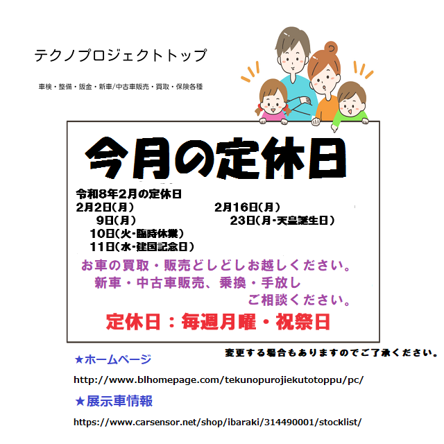 車検、修理、鈑金塗装、新車・中古車販売など車に関することは、茨城県ひたちなか市田彦のテクノプロジェクトトップへ